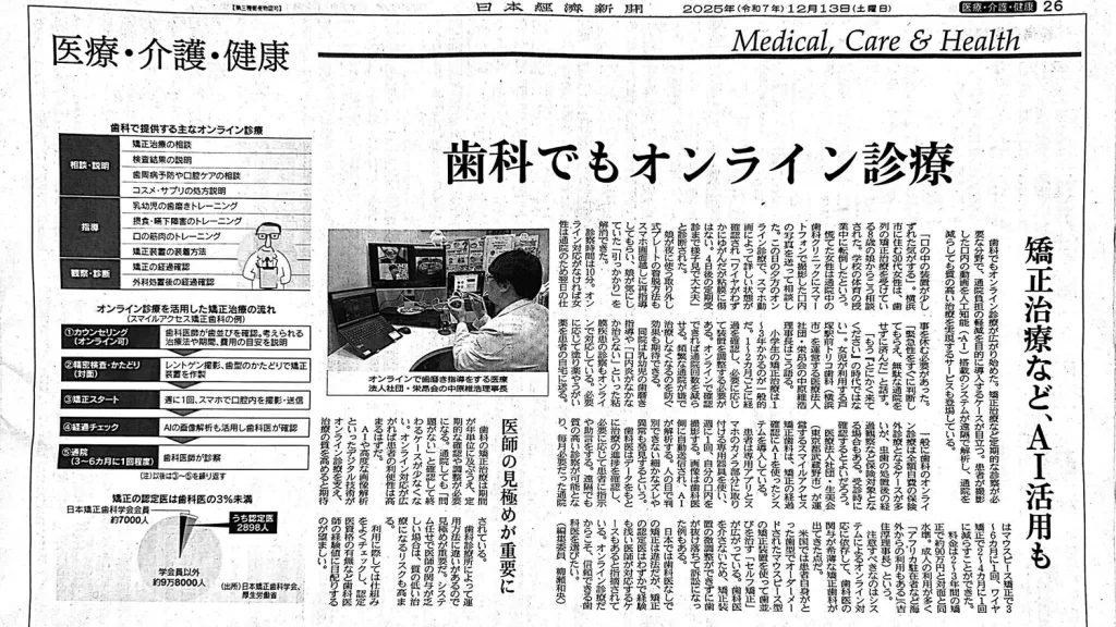 日本経済新聞12月13日朝刊「医療・介護・健康」にて、代表矯正歯科医・吉住の取材記事が掲載されました。